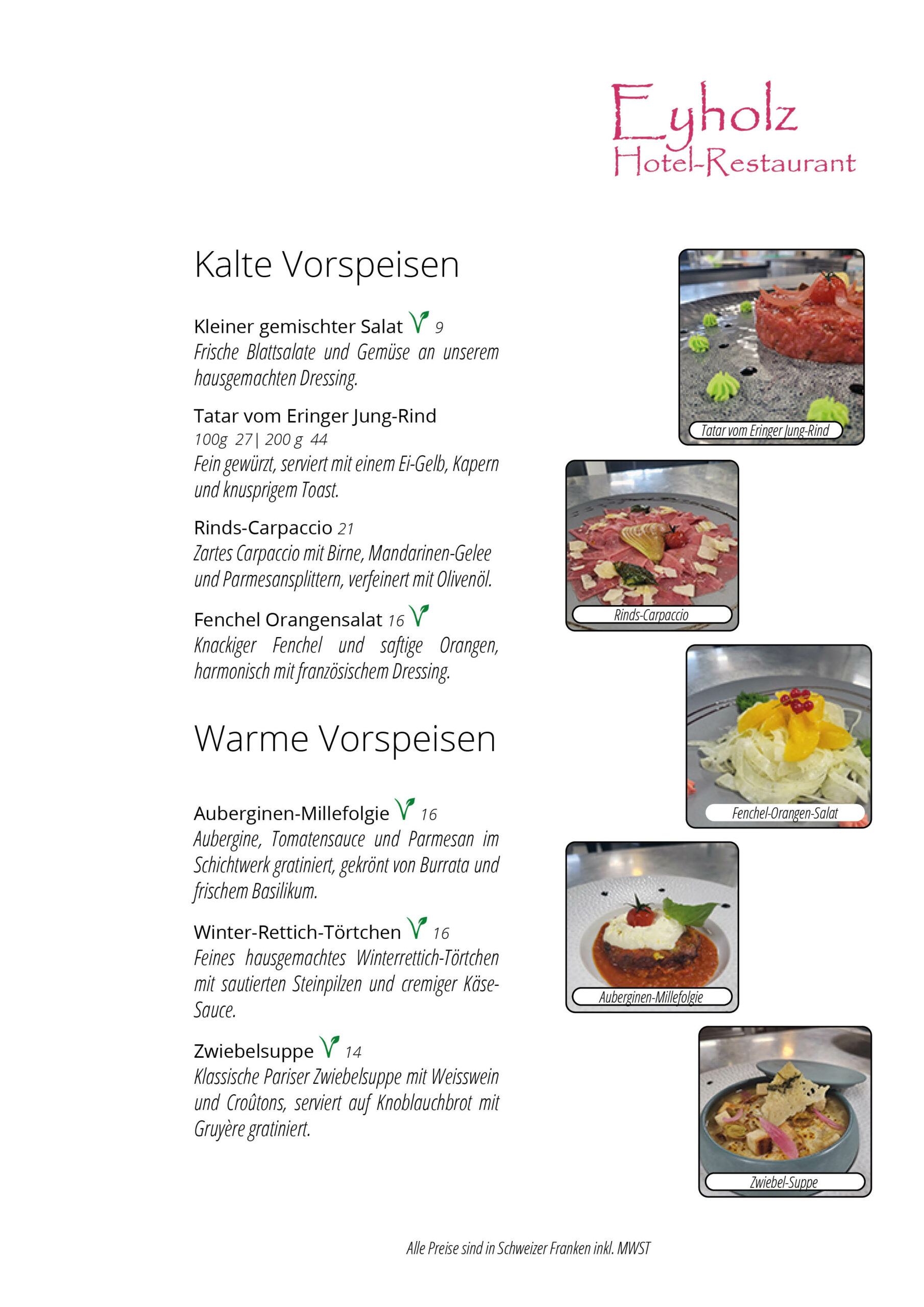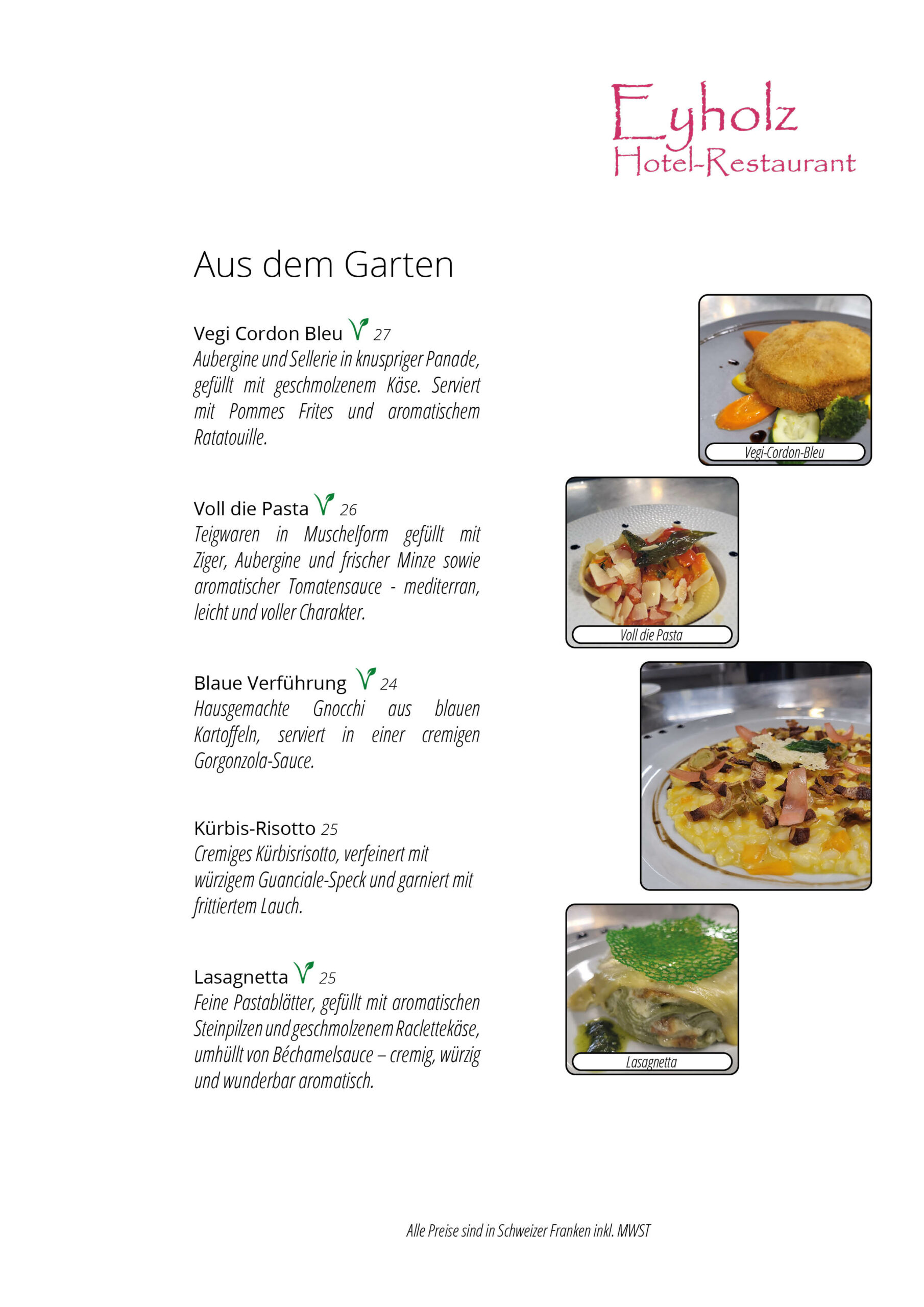 Im Jahresverlauf und zu jeder Jahreszeit erfinden wir Teile unsere Speisekarte neu.